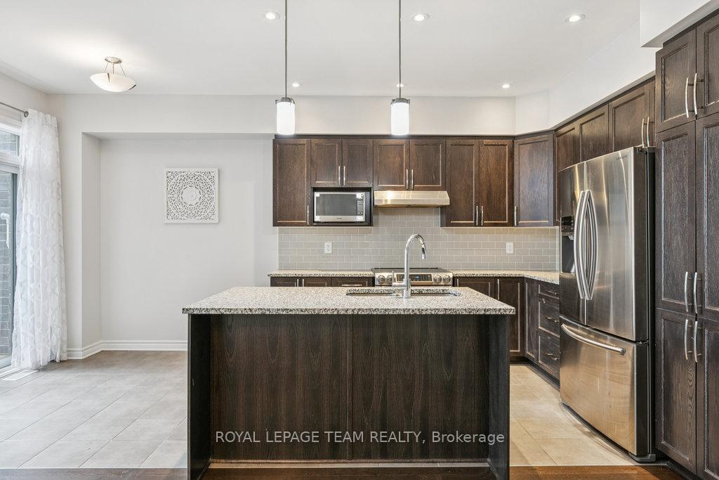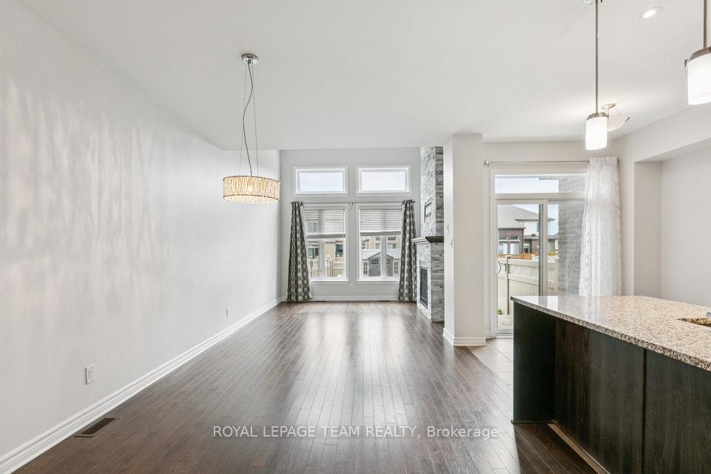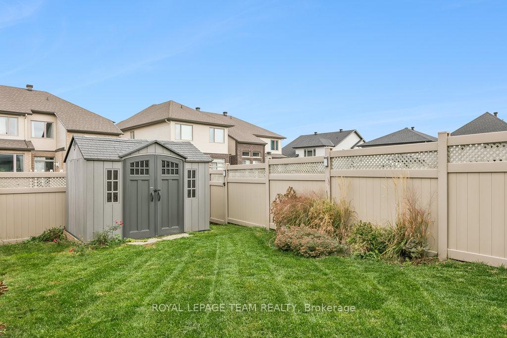 OPEN HOUSE Sunday Dec 21st from 2-4pm. Beautifully upgraded Richcraft Addison townhome on a premium oversized lot in Riverside South. You are welcomed to this home with custom low maintenance hardscaping providing extra width for parking. This bright and stylish 3-bedroom home offers a well-designed layout with quality finishes throughout. The open-concept main floor features a modern kitchen with granite counters, stainless steel appliances, and a dining area that flows into the living room. Vaulted ceilings, large windows, and a custom stone fireplace create an inviting space for relaxing or entertaining. Upstairs are three generous bedrooms and a convenient laundry room. The primary suite includes a walk-in closet and a 4-piece ensuite with a glass shower and separate tub. The finished lower level adds versatile living space-ideal for a media room, home office, or gym. Outside, enjoy the PVC fully fenced yard with a large deck and low-maintenance shed.