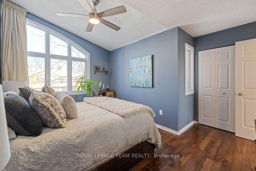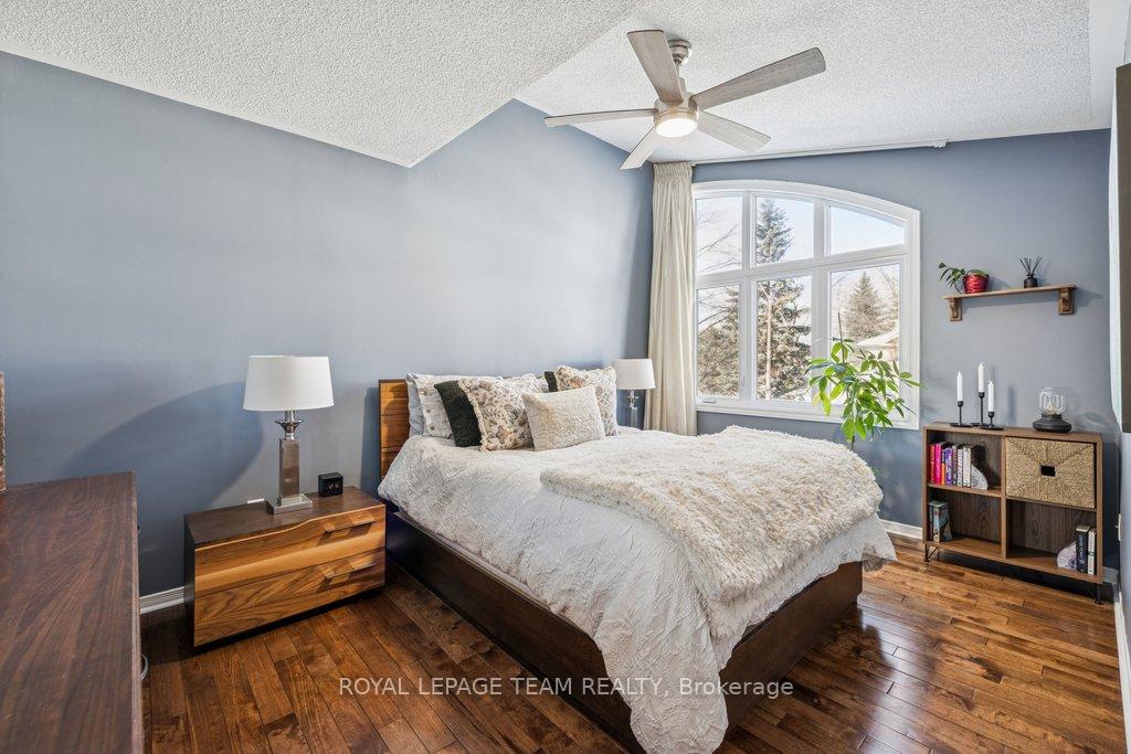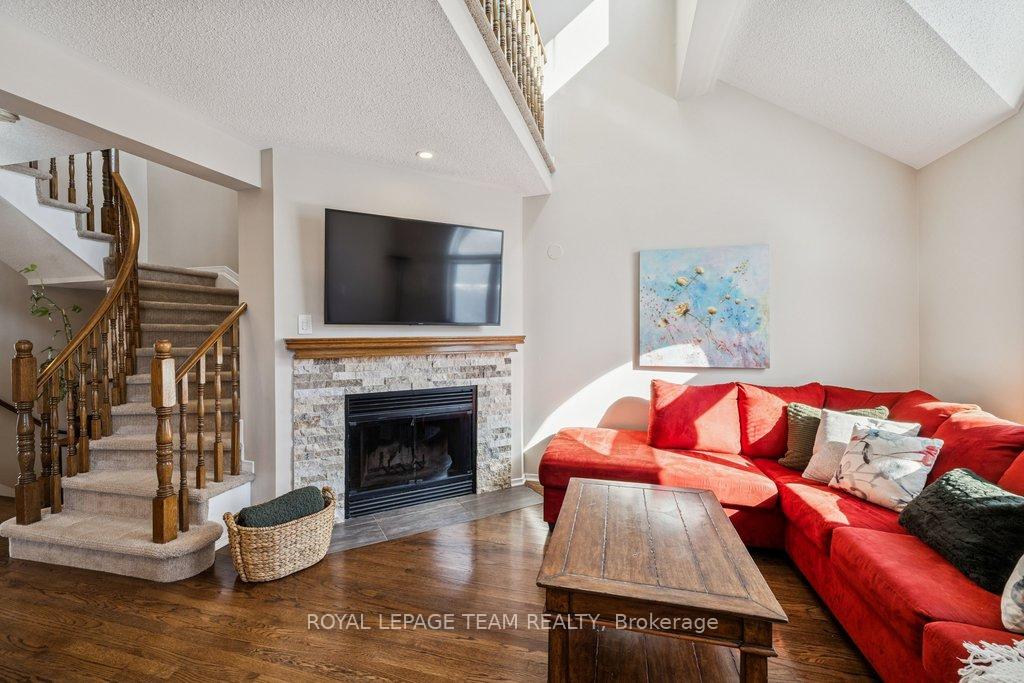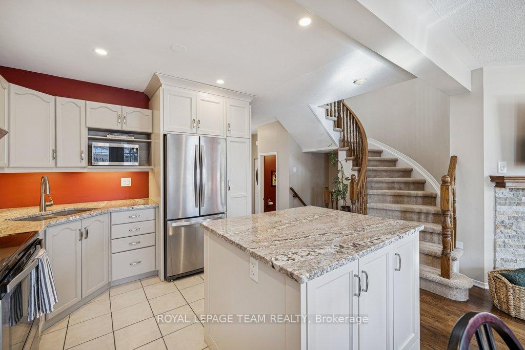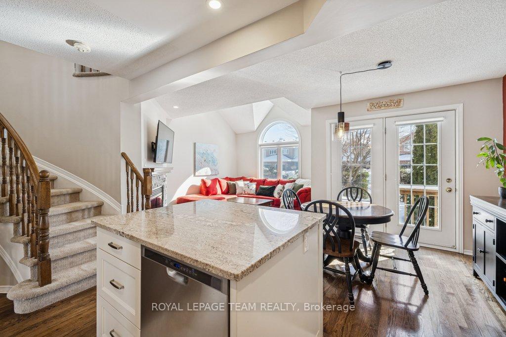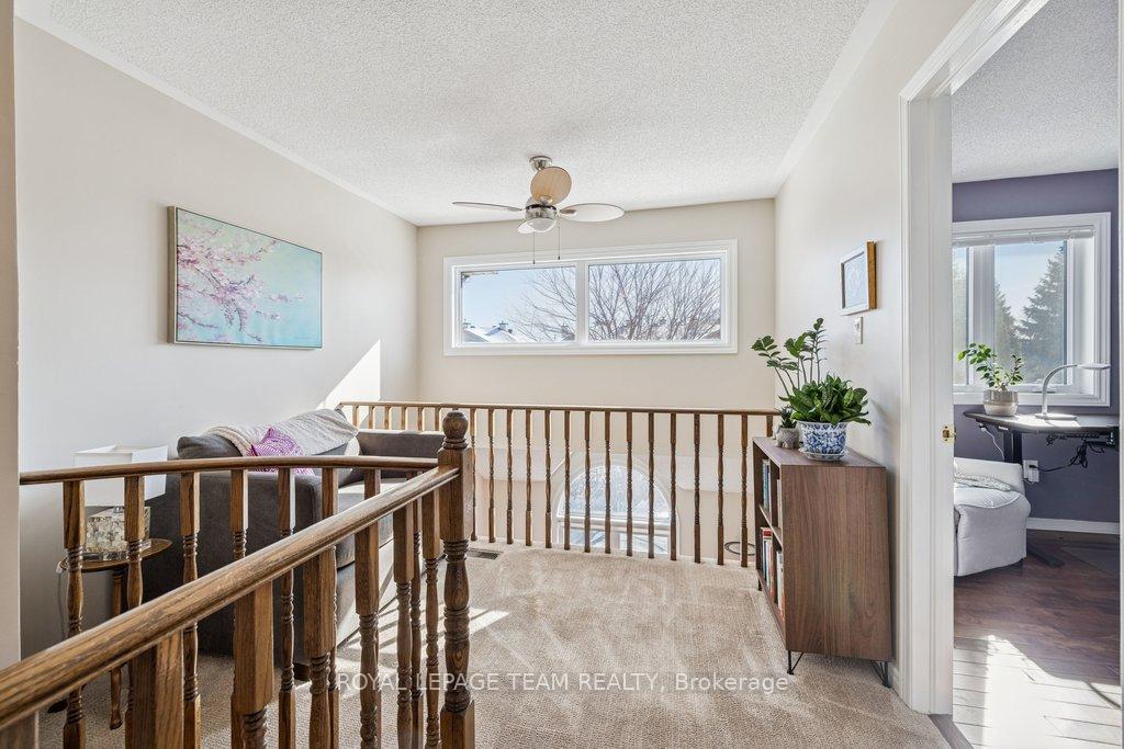 Welcome to this meticulously maintained home in desirable Carson Grove-just minutes from Blair LRT, NRC, and CSIS. The main floor features a stunning, redesigned kitchen, where granite countertops and a new custom centre island serve as the focal point. Modernized with premium cabinetry extensions, a designer sink and faucet, and a full suite of stainless steel appliances, all illuminated by newly installed pot lights. Transition to the living area, anchored by a wood burning fireplace with updated stonework, custom blinds and hardwood floors throughout the main level. On the upper level, enjoy the comfort of new plush carpeting, good-sized second bedroom, and a cozy loft area bathed in sunlight. The primary bedroom has soaring ceilings and a beautiful walk-in closet. The refreshed bathroom includes a new vanity and lighting. Step outside to a backyard oasis, transformed in 2022 with a new deck, stone patio, and winding garden paths through curated perennial beds. All windows have been replaced with high-efficiency Fenex windows (2018), furnace serviced (2023), AC serviced (2024), and duct and dryer vents were professionally cleaned (2025). From the designer finishes to the essential infrastructure, this turn-key gem offers an unparalleled living experience in one of Ottawa's most convenient locations.