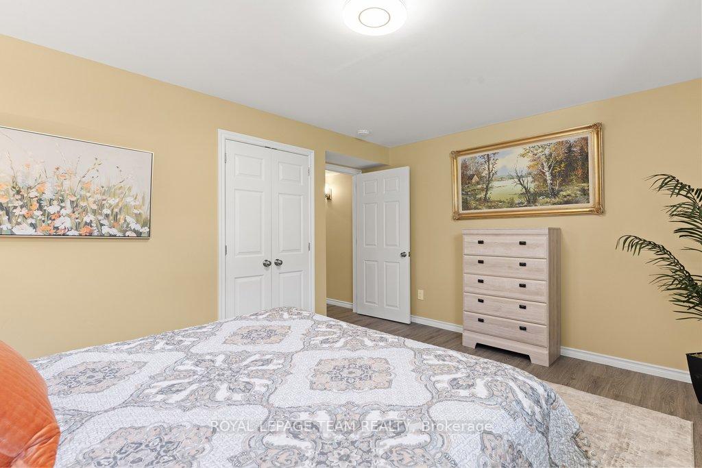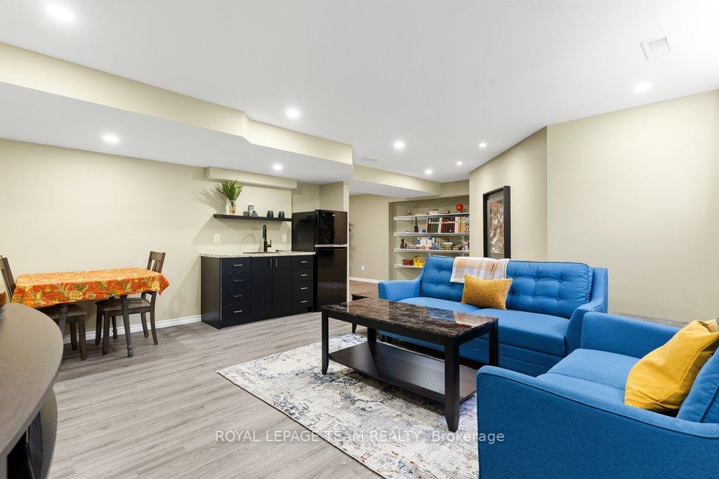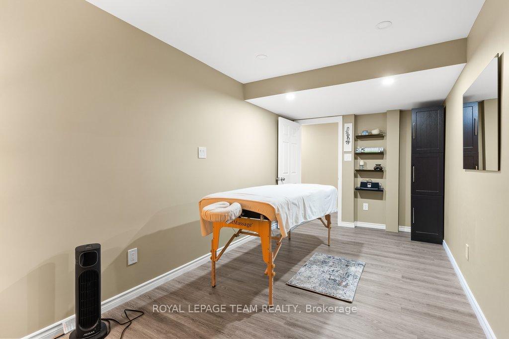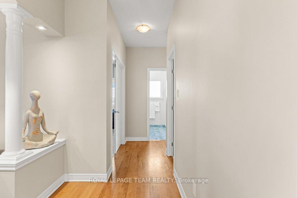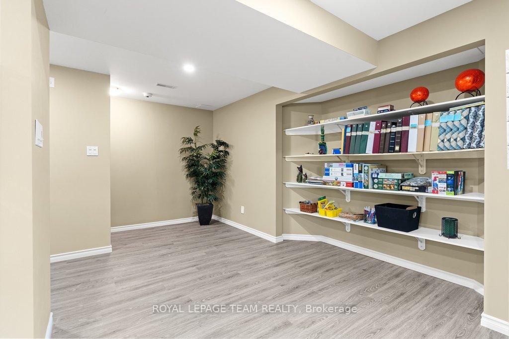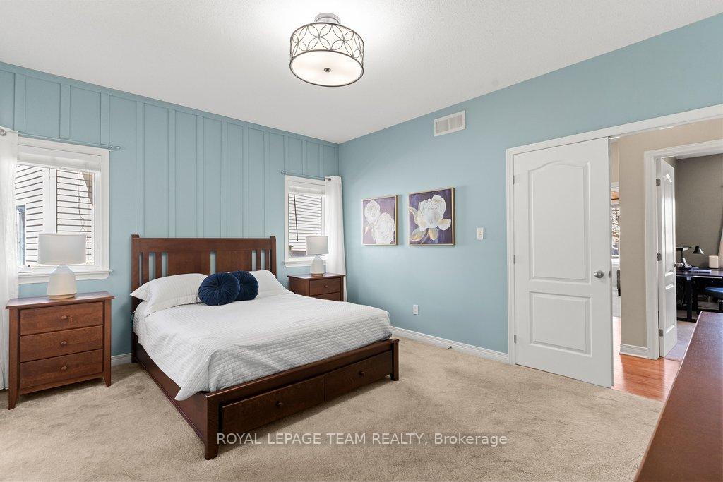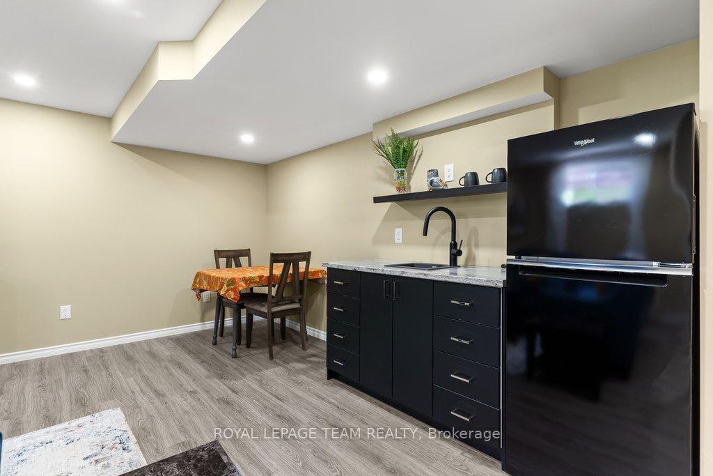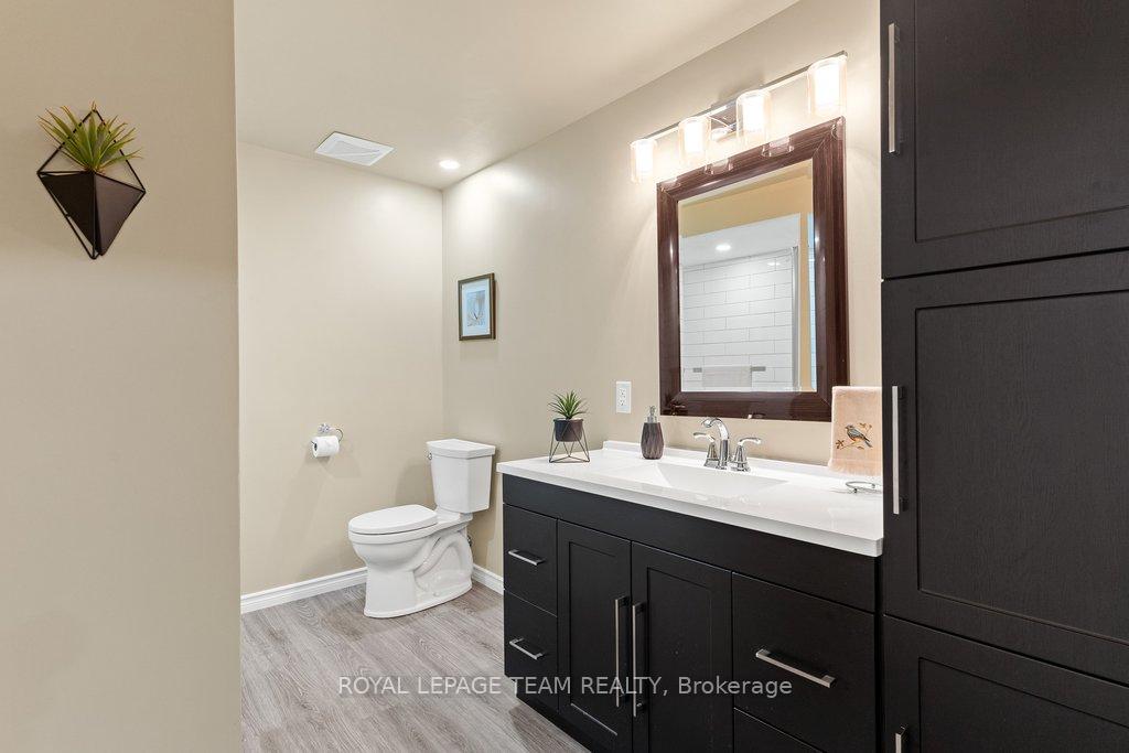 Welcome to this impeccably maintained 3-bedroom single-family home in the heart of Stittsville. This bright, sun-filled bungalow features high-end, modern finishes throughout. The main level offers hardwood and tile flooring, a formal dining room, and a spacious living area with a gas fireplace. The fully renovated kitchen (2023) includes an eat-in area ideal for everyday living. The primary suite features a walk-in closet and a renovated ensuite (2023) with heated floors and curbless shower. Two additional well-sized bedrooms and an updated main bath (2025), also with heated floors, complete the main level. The fully fenced backyard is set up for outdoor enjoyment with a new gazebo (2025) ,planter beds and irrigation system. The spacious finished basement adds valuable living space with a large rec room, bedroom, full bath, massage room, and workshop. Professionally painted with custom window coverings throughout. Conveniently located within walking distance to schools, parks, restaurants, transit, and the Trans Canada Trail.